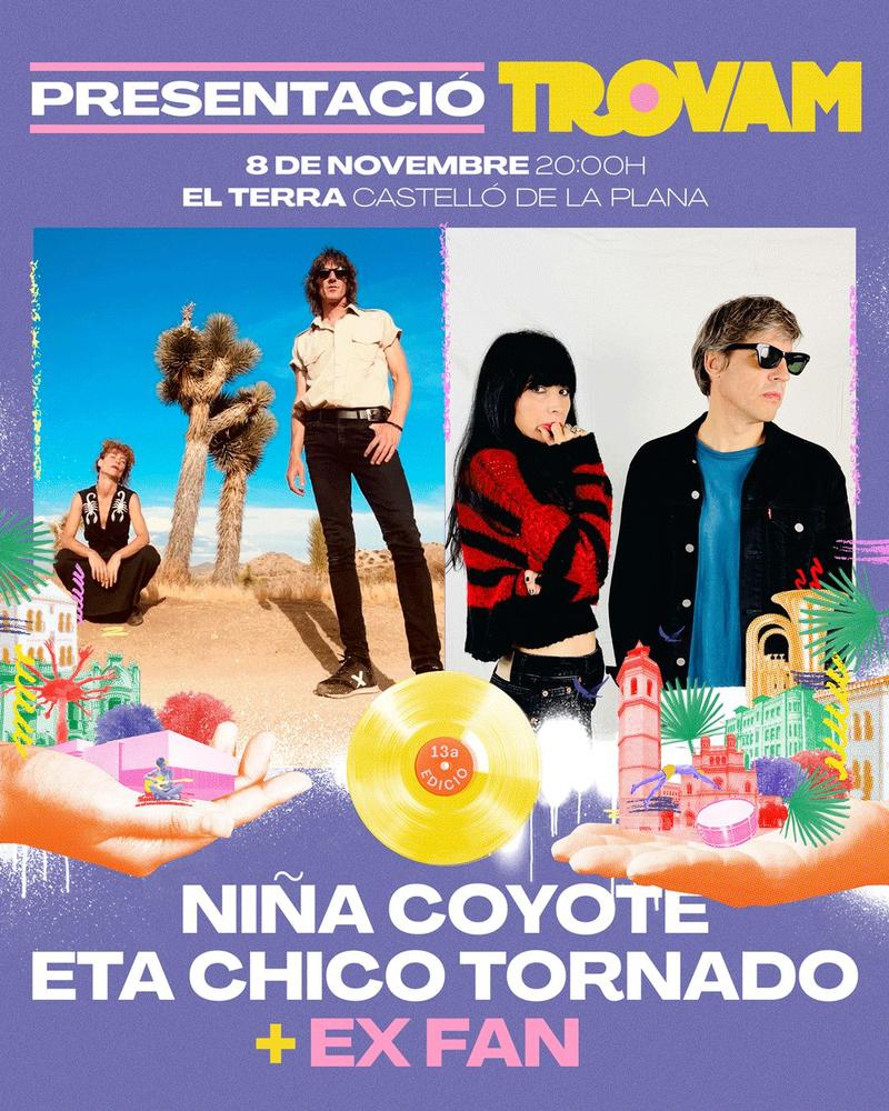 NIÑA COYOTE ETA CHICO TORNADO, que presenten el seu cinqué disc, "Atea". La banda torna al seu rock àrid i pesat, ampliant la paleta amb tocs de psicodèlia i nous ritmes. Com a banda convidada, comptarem amb l'energia del power trio EX FAN.